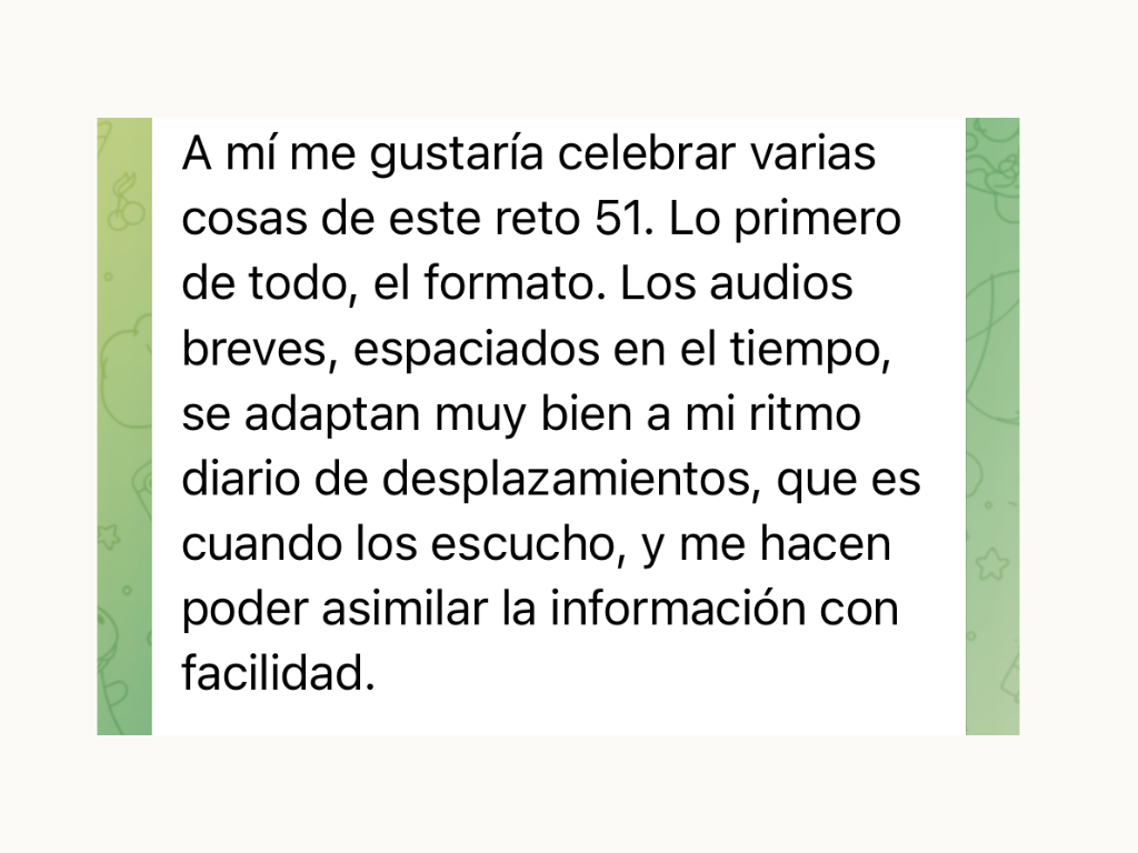 Con el Reto 51 vas a hacerlo de otra manera: con un paso a paso simple en audios, con una idea clara y una mini acción para que dejes de improvisar.